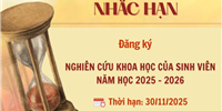 Sau một thời gian triển khai, hoạt động Nghiên cứu khoa học cấp Khoa năm học 2025 - 2026 đã nhận được rất nhiều sự quan tâm của các bạn sinh viên. Nhằm hỗ trợ các bạn sinh viên hoàn thiện thông tin đăng kí đề tài và người hướng dẫn, Khoa Ngữ văn xin trân trọng thông báo về thời hạn đăng kí: